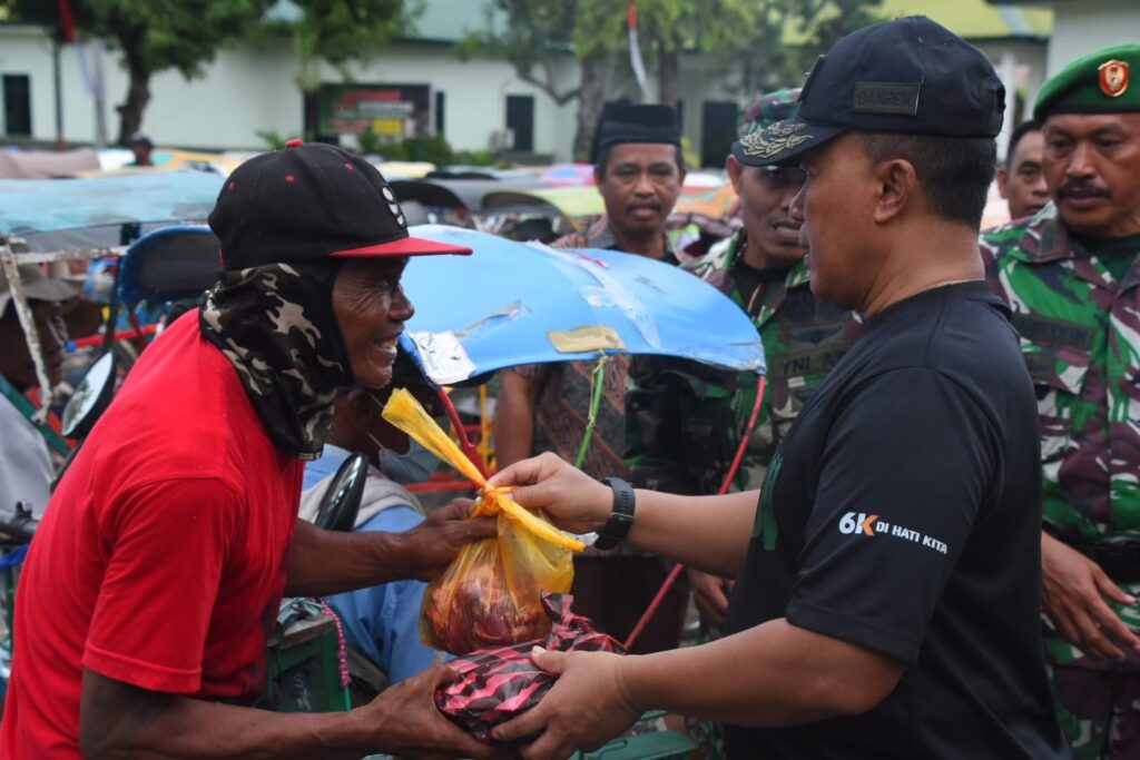 Watampone – Kepedulian Danrem 141/Tp Brigjen TNI Budi Suharto, S.I.P., M.Si di dampingi Ketua Persit Kartika Candra Kirana Koorcab Rem 141 PD XIV/Hsn Ny. Lina Herlina Budi Suharto beserta anggota Korem 141/Tp, melaksanakan Jumat berkah pembagian nasi bungkus dan uang sekaligus Pembagian Daging Kurban hari ke 2 kepada 100 Tukang Becak dan Pemulung/warga kurang mampu yang berada disekitaran Kota Watampone. Jumat (30/06/2023).