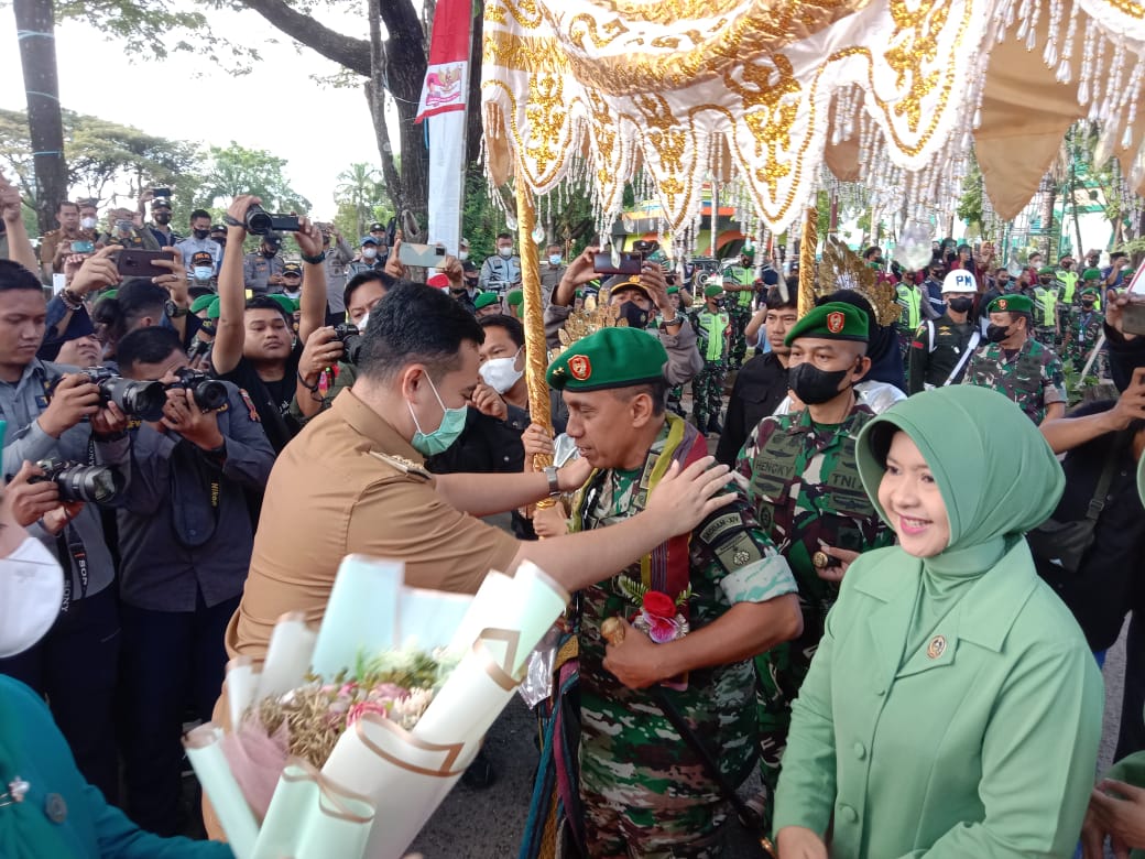 Pangdam XIV/Hsn didampingi ibu beserta rombongan menuju Aula Makodim 1421/Pangkep melaksakan tatap muka dengan Forkopinda Kab. Pangkep yang dirangkaikan dengan Penyerahan Banner Simbolis Hibah TA. 2022 dari Bupati Pangkep kpd Pangdam XIV/Hsn (Rehab total Makodim 1421/Pkp Rp. 827.608.000,- , Plafon Mesjid Rp. 100.000.000,-, Hibah Bangunan & Tanah seluas 491 M2 untuk Pos Ramil di Kec. Tondong Tallasa, Penyerahan cindera mata dari Bupati Pangkep kpd Pangdam XIV/Hsn serta Penyerahan cindera mata dari Ibu Ketua PKK Kab. Pangkep kpd Ibu Ketua Persit Kartika Chandra Kirana PD XIV/Hsn