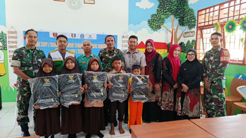 Dalam kegiatan tersebut, Kodim 1407/Bone bekerja sama dengan Baznas Kabupaten Bone menyalurkan bantuan berupa baju sekolah, tas, serta alat tulis bagi para siswa. Tidak hanya itu, puluhan nasi kotak juga turut dibagikan untuk memberikan semangat tambahan kepada anak-anak yang menerima bantuan.