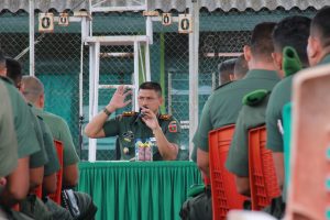 BONE – Komandan Kodim 1407/Bone Letkol Inf. Moch. Rizqi Hidayat Djohar memberikan jam Komandan kepada para Perwira Staf, Danramil, anggota Bintara, Tamtama dan PNS Kodim 1407/Bone, bertempat di Lapangan Tenis Makodim, Jl. Lapatau, Kec. Tanete Riattang, Kab. Bone. Kamis (06/10/22).