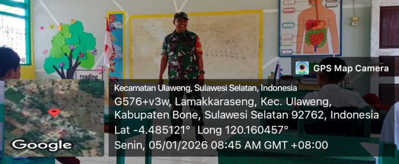 Bone – Babinsa Koramil 1407-05/Ulaweng Pelda Syamsuddin melaksanakan Pembinaan Perlawanan Wilayah (Wanwil) di SD Inpres 3/77 Lamakkarseng, Desa Lamakkarseng, Kec. Ulaweng, Kab. Bone. Senin siang (05/01/26).