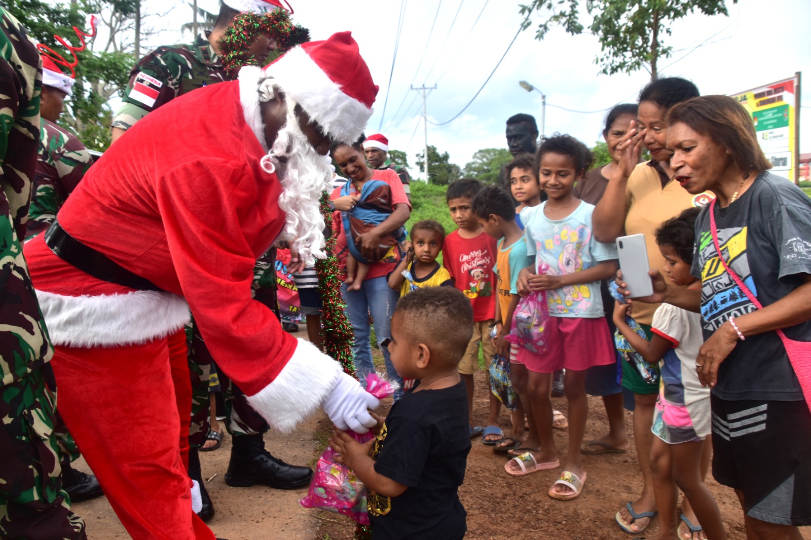 Dalam rangka menyambut perayaan Natal Tahun 2023, Kodim 1707/Merauke yang dipimpin langsung oleh Komandan Kodim 1707/Merauke Letkol Inf Bayu Kriswandito, S.Hub. Int., M.H.I. didampingi Ketua Persit KCK Cabang XVIII Kodim 1707 Ny. Nita Bayu Kriswandito menggelar kegiatan Santa Claus keliling Kota Merauke dengan memberikan paket sembako dan makanan ringan kepada masyarakat. Jum’at (22/12/2023).