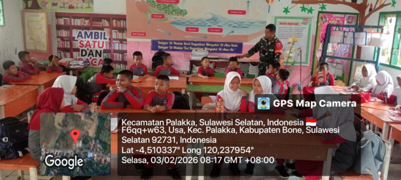 BONE – Babinsa Koramil 1407-21/Palakka Koptu Semaila melaksanakan kegiatan Pembinaan Wawasan Kebangsaan (Binwanwil) kepada para siswa Siswi SD Negeri 28 Desa Usa, Kec. Palakka, Kab. Bone. Selasa (03/02/26).