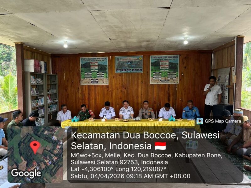 BONE – Babinsa Koramil 02/Dua Boccoe Kodim 1407/Bone Serka Jefri menghadiri acara tudang sipulung yg diadakan di sanggar Tani Dusun 1, Desa Melle, Kec. Dua Boccoe, Kab. Bone, Sabtu Siang (04/04/26)