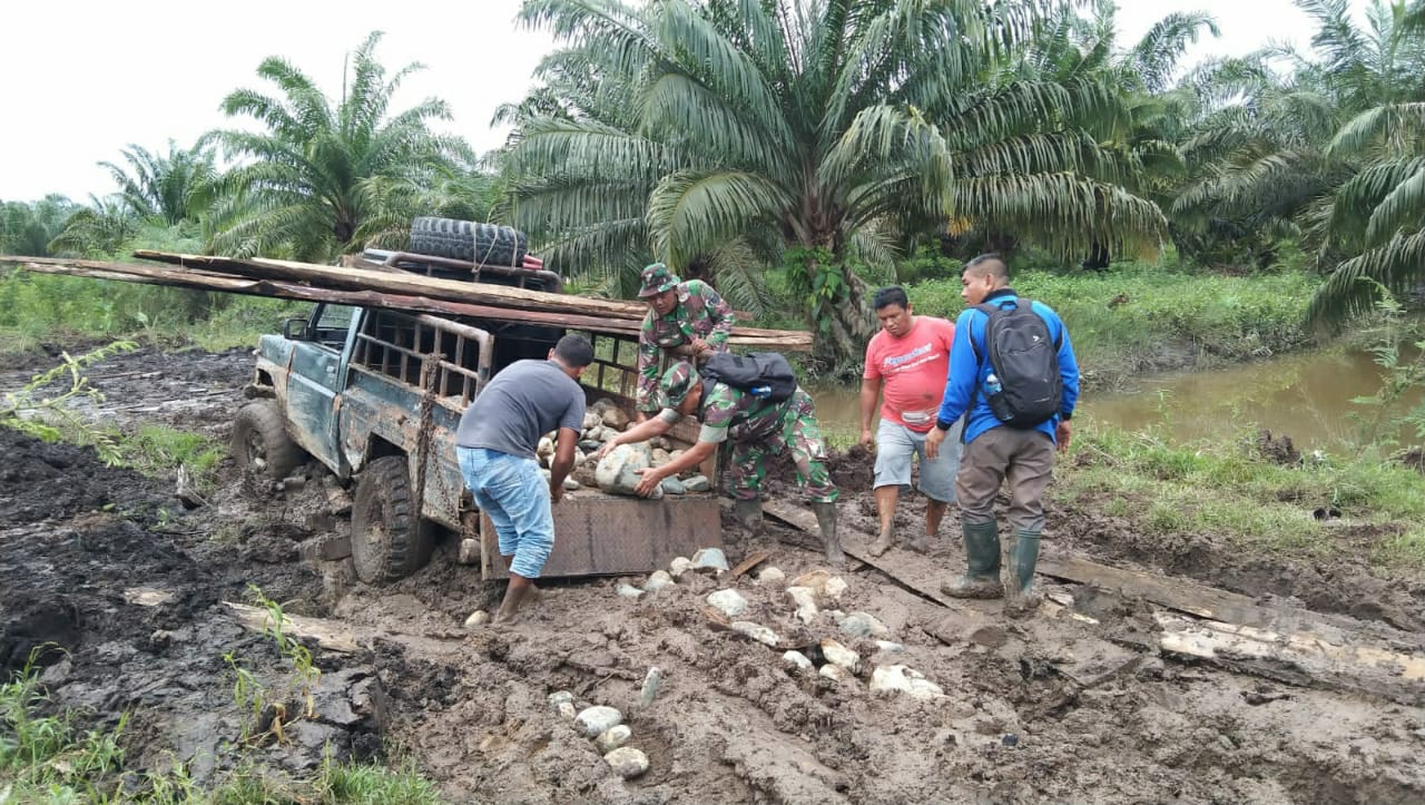 Babinsa Serma Rahmat Jailani menjelaskan, bahwa saat itu hujan yang mengguyur bukanlah masalah. Warga dan Satgas TMMD tetap bekerja menimbun tanah pada galar.