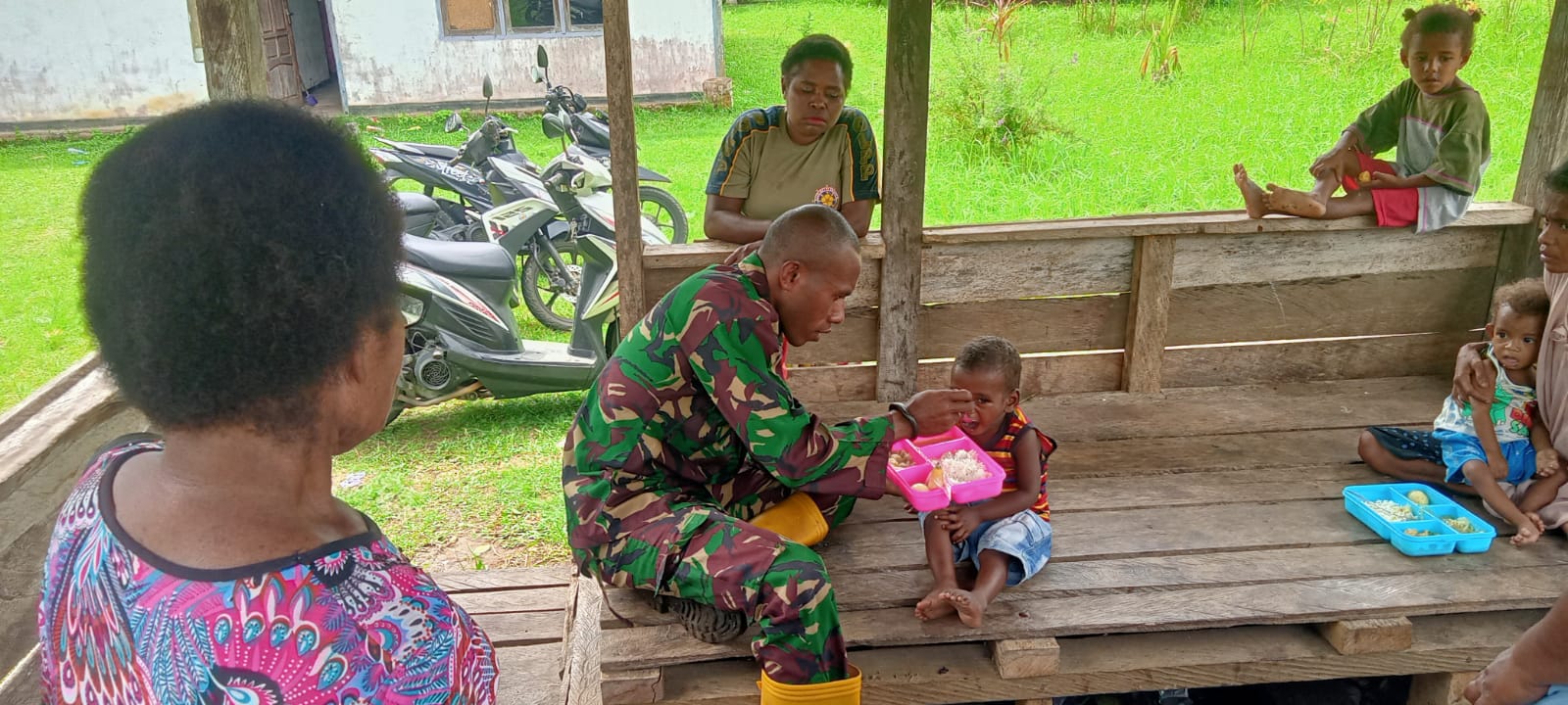 TNI & POLRI Dukung Program Ketahanan Gizi, Babinsa Koramil 1407-21/Palakka Dampingi Pemberian Makan Gratis