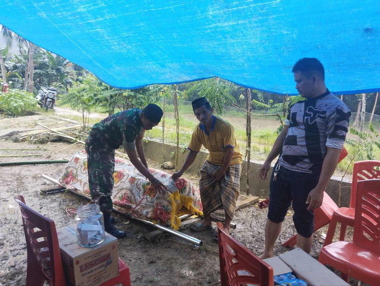 Bentuk Peduli, Babinsa Koramil 1407-17/Salomekko Bantu Warga Perbaiki Makam