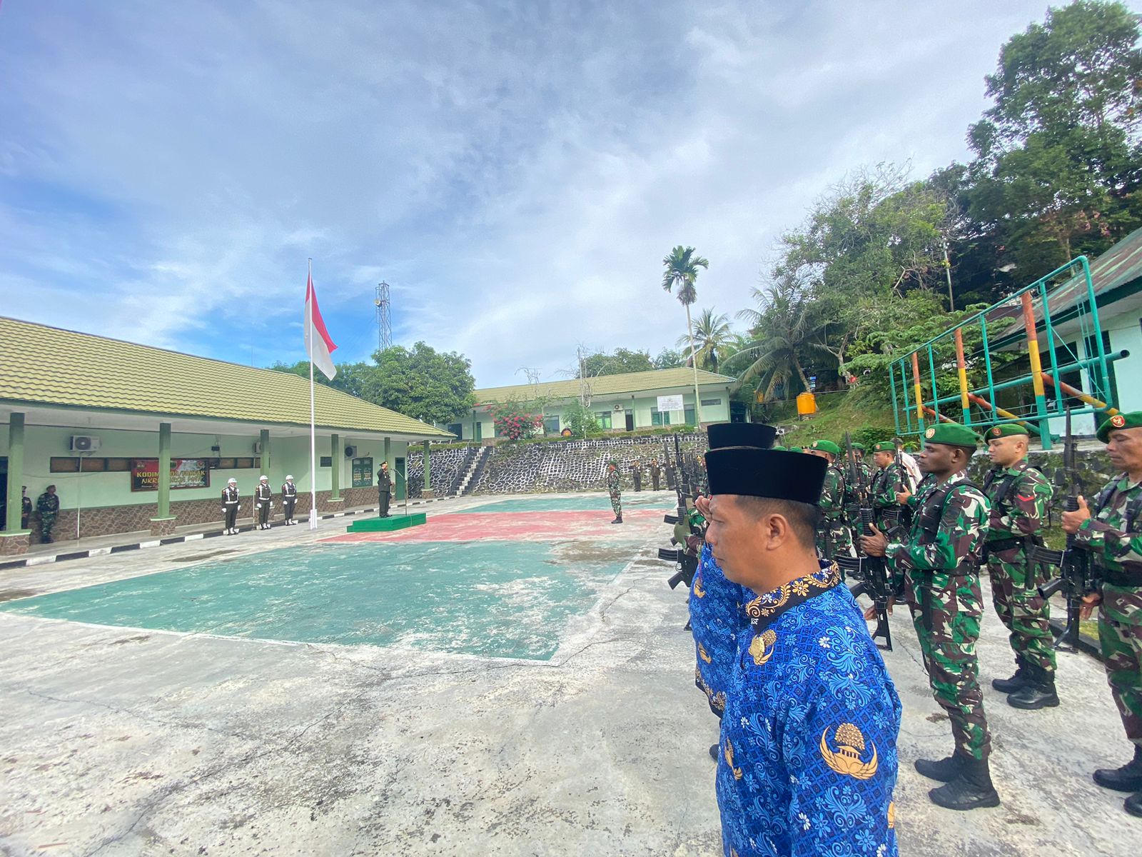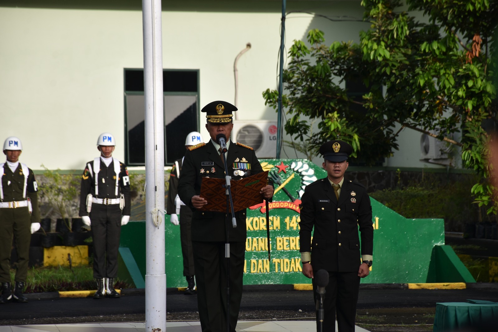 TNI & POLRI Babinsa Koramil 19/Kahu Kodim 1407/Bone Bertindak Sebagai Pembina Upacara Di SMPN 4 Bone