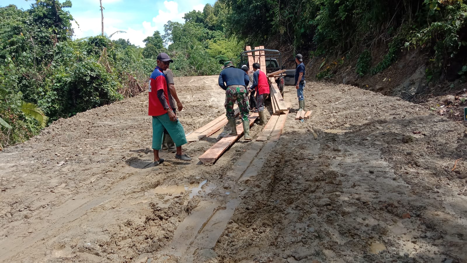 TNI & POLRI Babinsa Koramil 1407-11/Barebbo Bersama Warga Kerja Bakti, Bangun Talud Jalan Tani