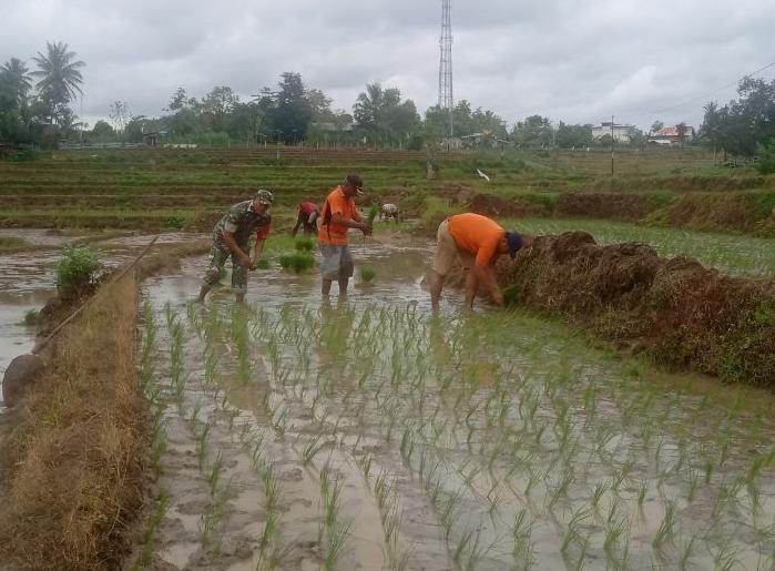 TNI & POLRI Babinsa Koramil 1407-11/Barebbo Bersama Warga Kerja Bakti, Bangun Talud Jalan Tani