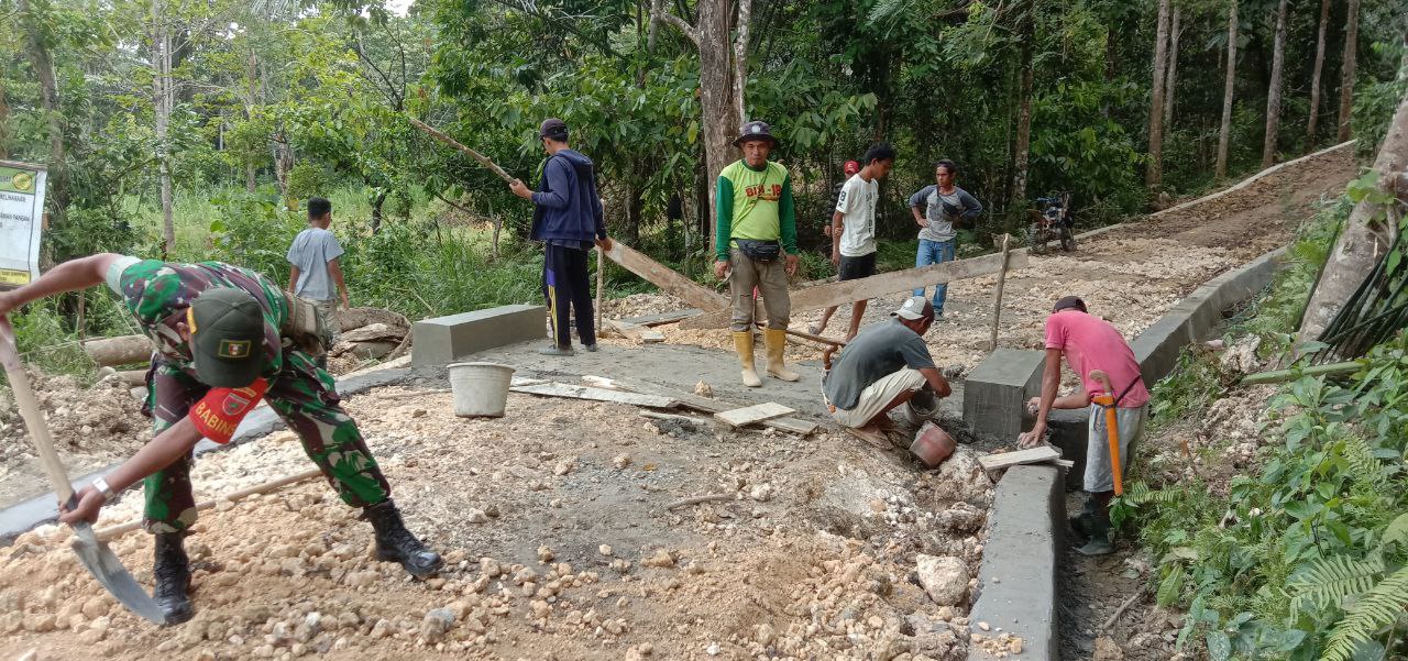 Dukung Kesejahteraan Petani, Babinsa Koramil 21/Palakka Turun Langsung Benahi Akses Jalan