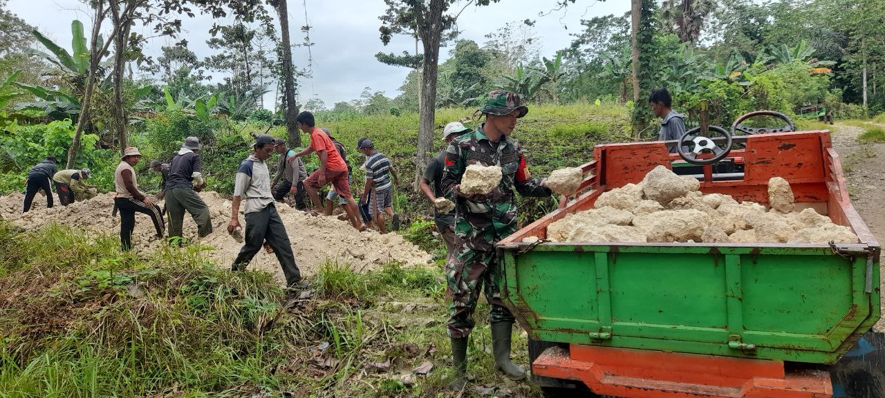 Babinsa Koramil 1407-11/Barebbo Bersama Warga Kerja Bakti, Bangun Talud Jalan Tani