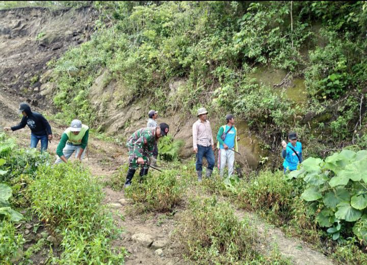 Babinsa Koramil 1407-11/Barebbo Bersama Warga Kerja Bakti, Bangun Talud Jalan Tani
