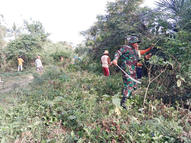 TNI & POLRI Sinergi Tanpa Batas, Babinsa Koramil 19/Kahu Dan Warga Hulo Kompak Bahu Membahu Bersihkan Lingkungan