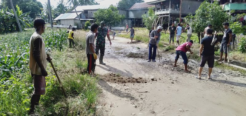 Dukung Kelancaran Logistik Pertanian, Babinsa Koramil 1407-05/Ulaweng Kawal Perbaikan Jalan Di Amali