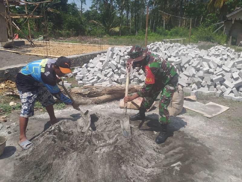 TNI & POLRI Kemanunggalan Tanpa Batas, Aksi Nyata Babinsa Koramil 1407-03/Cenrana Bantu Pembangunan Rumah Warga