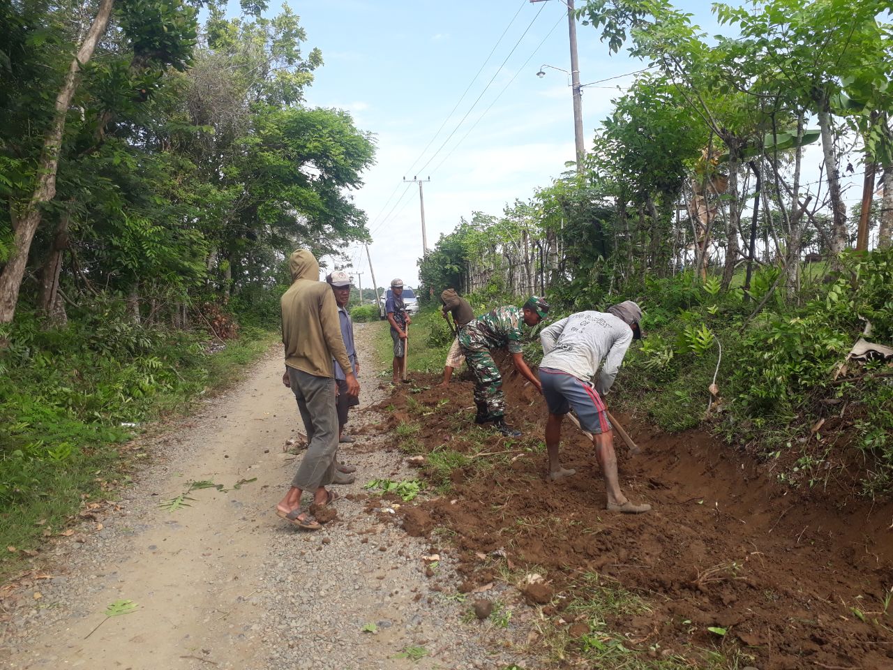 TNI & POLRI Babinsa Koramil 1407-11/Barebbo Bersama Warga Kerja Bakti, Bangun Talud Jalan Tani