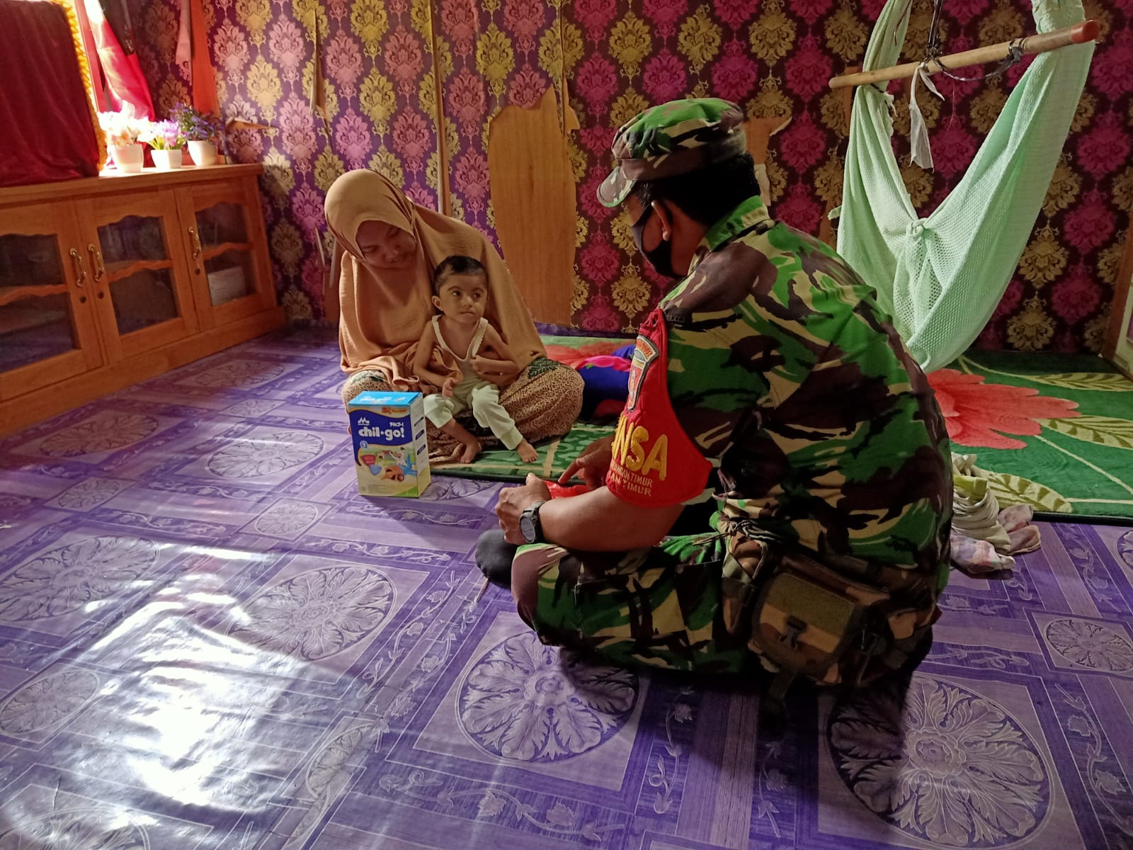 TNI & POLRI Babinsa Koramil 09/Lapri Kodim Bone Dampingi Kegiatan Posyandu Di Desa Mattaropuli