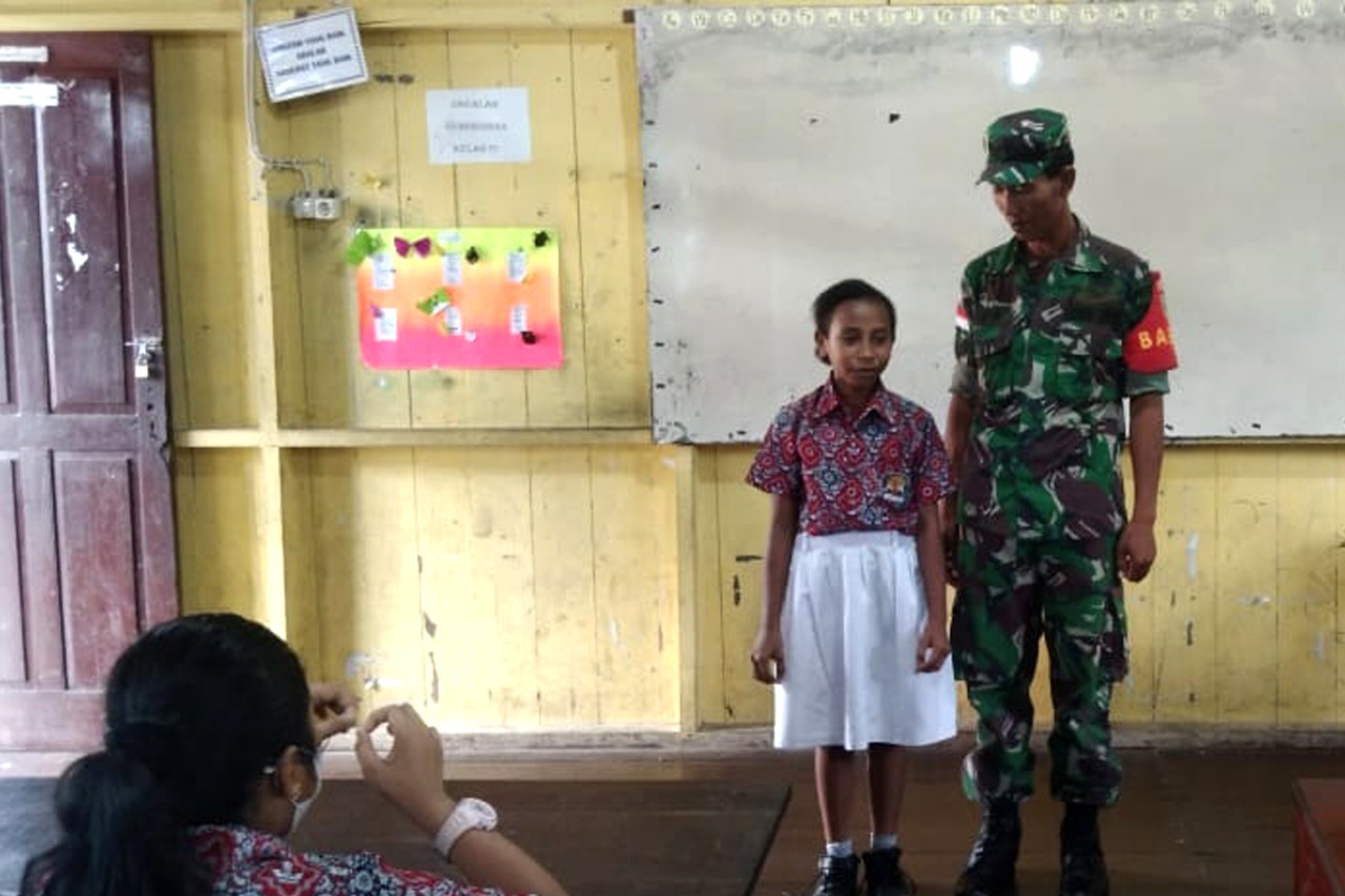 TNI & POLRI Kawal Gizi Pelajar, Babinsa Koramil 1407-07/Tanete Riattang Dampingi Pembagian Makan Gratis Di SDN 12/79 Macanang