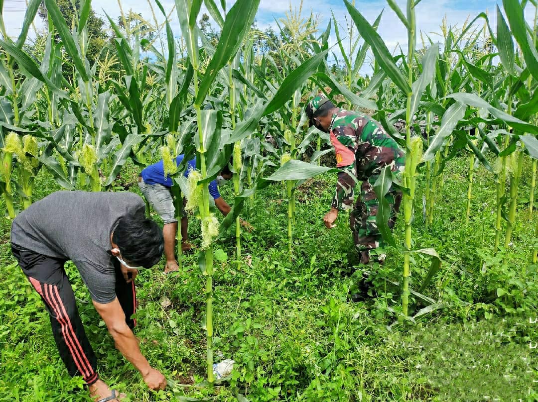 TNI & POLRI Bantu Petani Panen Jagung, Babinsa Koramil 1407-02/Dua Boccoe Ringankan Pekerjaan Warga Sangrangeng