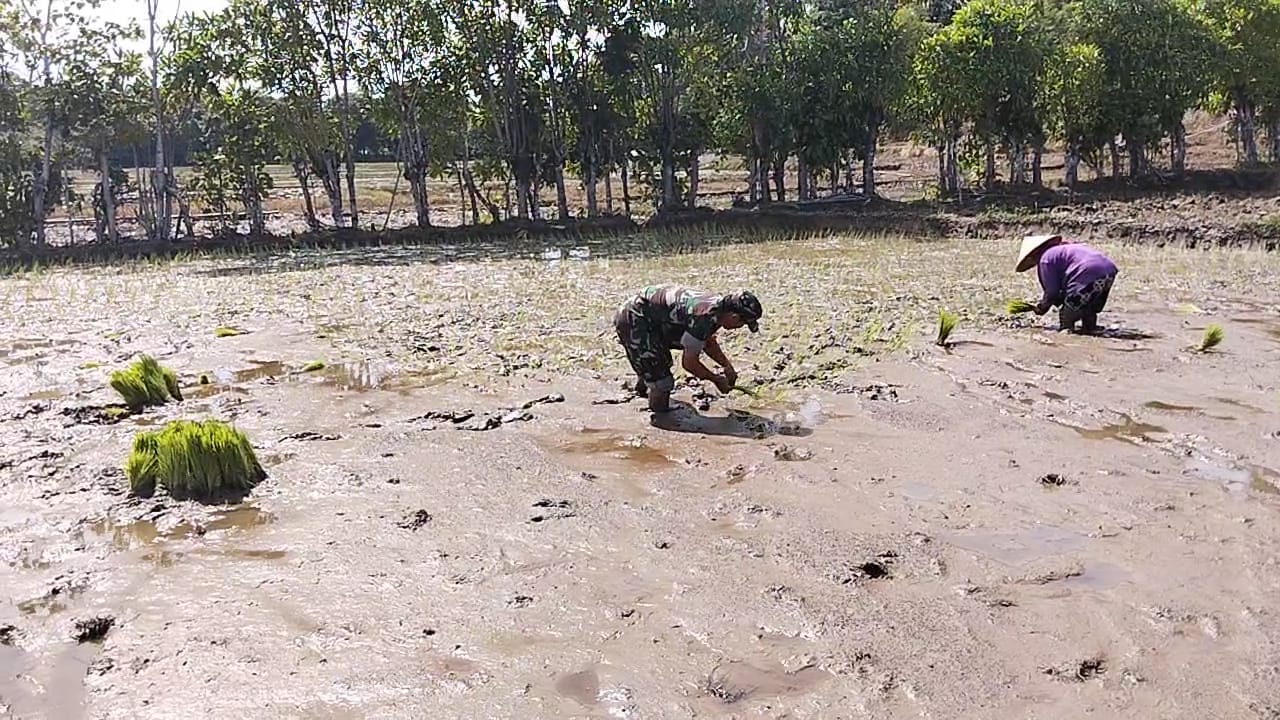 Optimalkan Sistem Pengairan, Babinsa Koramil 1407-20/Bontocani Dampingi Petani Rapikan Pematang Sawah