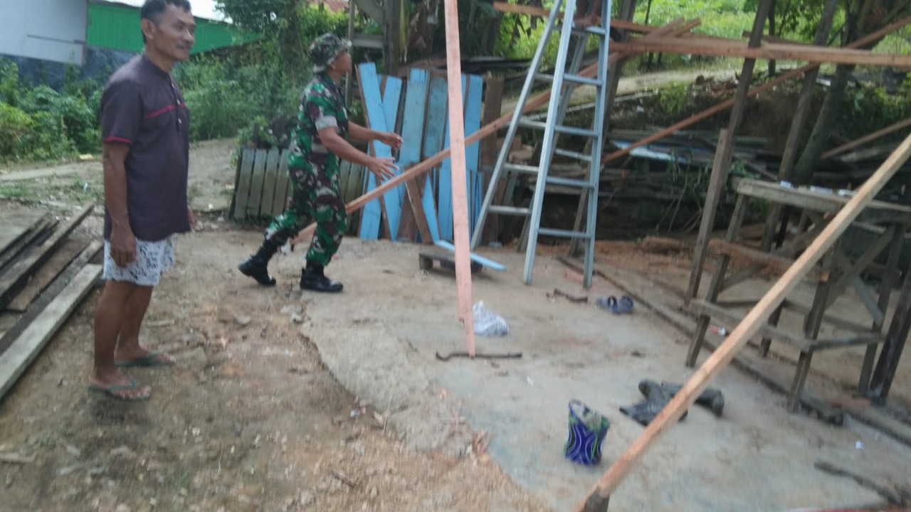 Babinsa Koramil 1407-18/Kajuara Bantu Pembangunan Pondasi Rumah Warganya