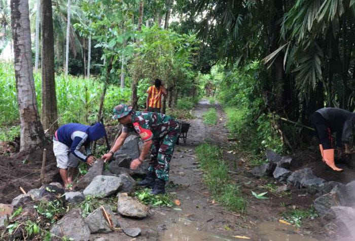 TNI & POLRI Babinsa Koramil 1407-05/Ulaweng-Amali Laksanakan Kerja Bakti Bareng Warga Desa Tocinnong