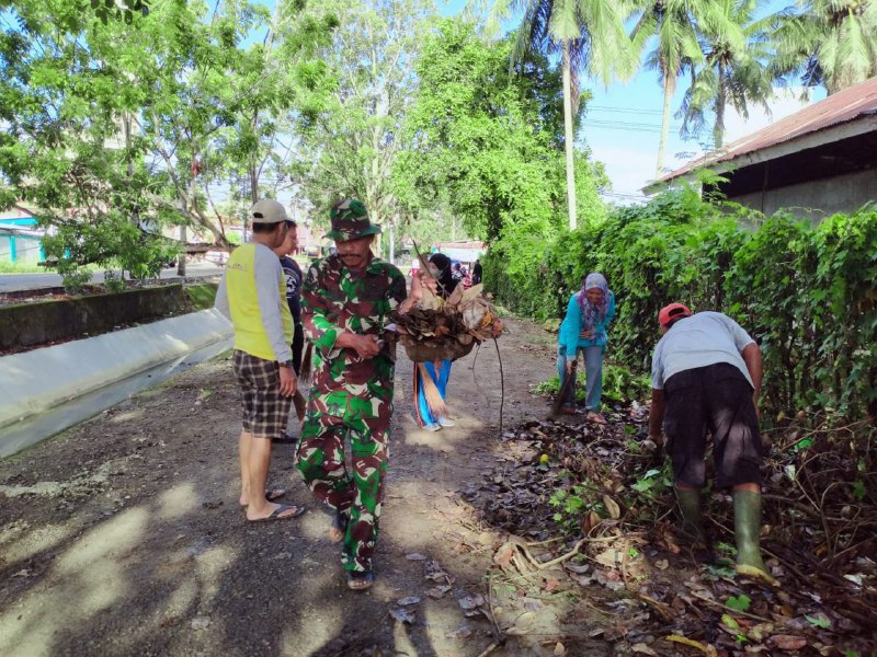 TNI & POLRI Babinsa Koramil 1407-05/Ulaweng-Amali Laksanakan Kerja Bakti Bareng Warga Desa Tocinnong