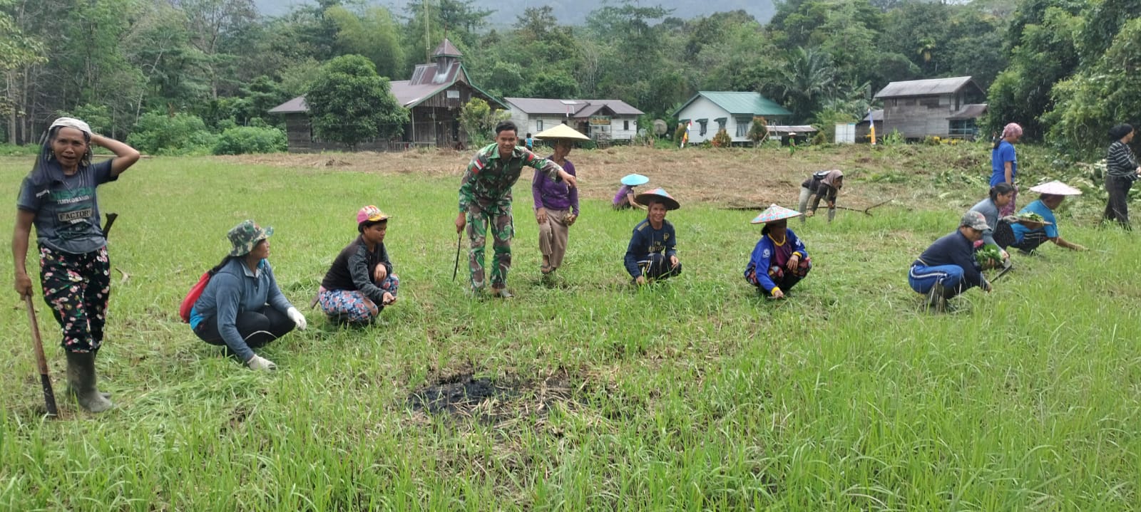 TNI & POLRI Perkuat Ketahanan Pangan, Babinsa Koramil 1407-12/Cina Dampingi Petani Desa Lompu Olah Lahan Padi