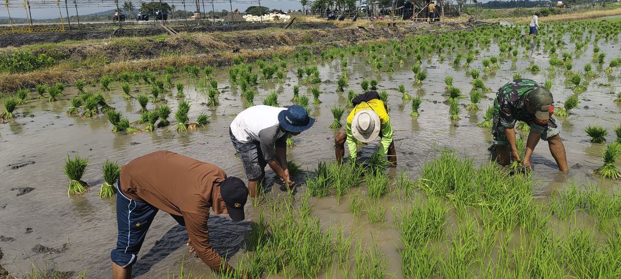 TNI & POLRI Perkuat Ketahanan Pangan, Babinsa Koramil 1407-12/Cina Dampingi Petani Desa Lompu Olah Lahan Padi