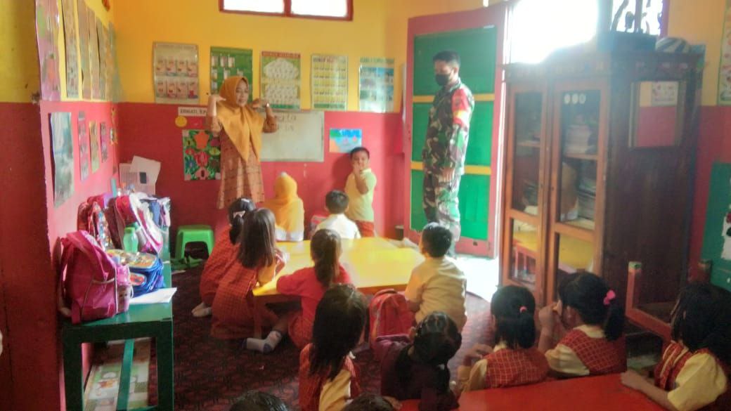 Tanamkan Benih Nasionalisme, Babinsa Posramil Patimpeng, Koramil 1407-19/Kahu Beri Materi Wasbang Di SDN 252 Massila