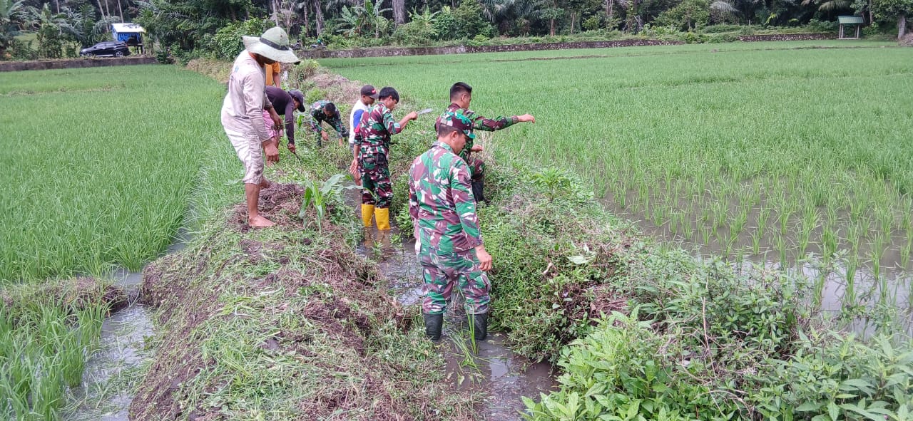 TNI & POLRI Perkuat Ketahanan Pangan, Babinsa Koramil 1407-12/Cina Dampingi Petani Desa Lompu Olah Lahan Padi