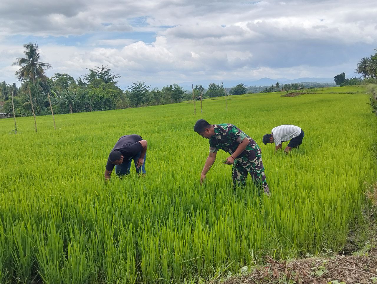 Perkuat Ketahanan Pangan, Babinsa Koramil 1407-12/Cina Dampingi Petani Desa Lompu Olah Lahan Padi