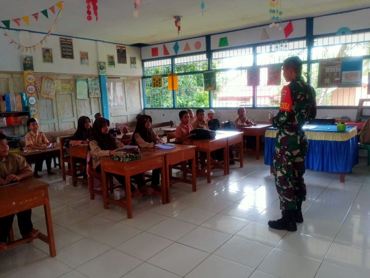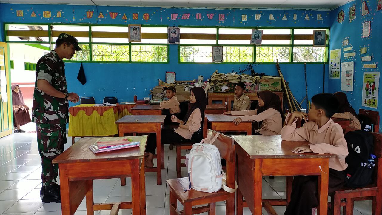 TNI & POLRI Tanamkan Benih Nasionalisme, Babinsa Posramil Patimpeng, Koramil 1407-19/Kahu Beri Materi Wasbang Di SDN 252 Massila
