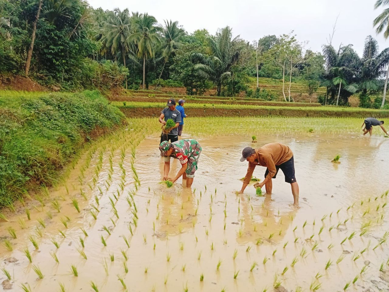 TNI & POLRI Perkuat Ketahanan Pangan, Babinsa Koramil 1407-12/Cina Dampingi Petani Desa Lompu Olah Lahan Padi