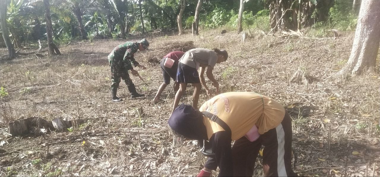 TNI & POLRI Perkuat Ketahanan Pangan, Babinsa Koramil 1407-12/Cina Dampingi Petani Desa Lompu Olah Lahan Padi