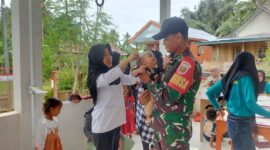 TNI & POLRI Kawal Gizi Pelajar, Babinsa Koramil 1407-07/Tanete Riattang Dampingi Pembagian Makan Gratis Di SDN 12/79 Macanang