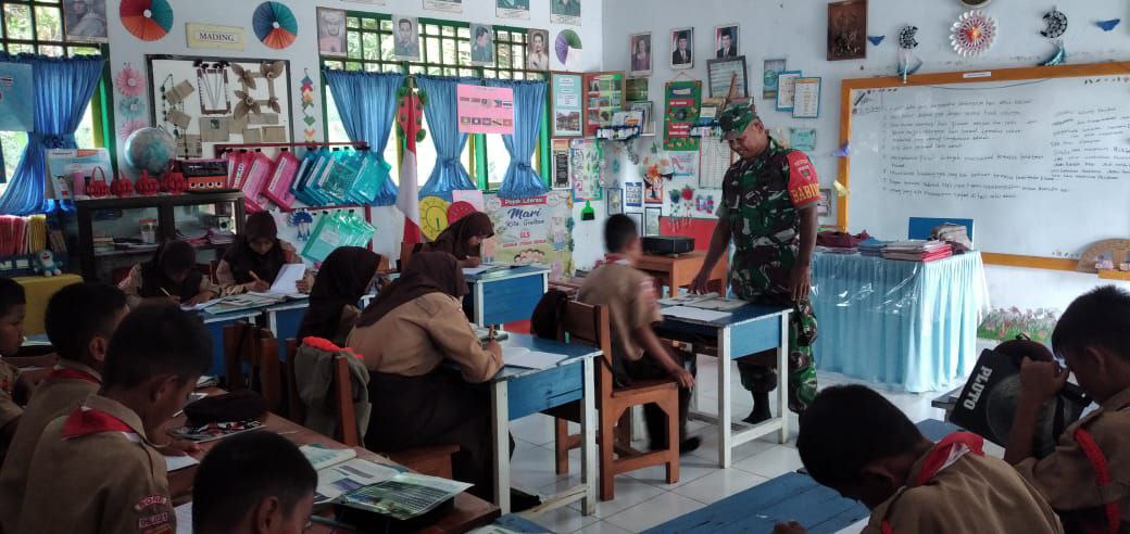 Aksi Kompak Babinsa Koramil 1407-03/Cenrana Dan Siswa SD Inpres Watu : Kerja Bakti Perindah Sekolah