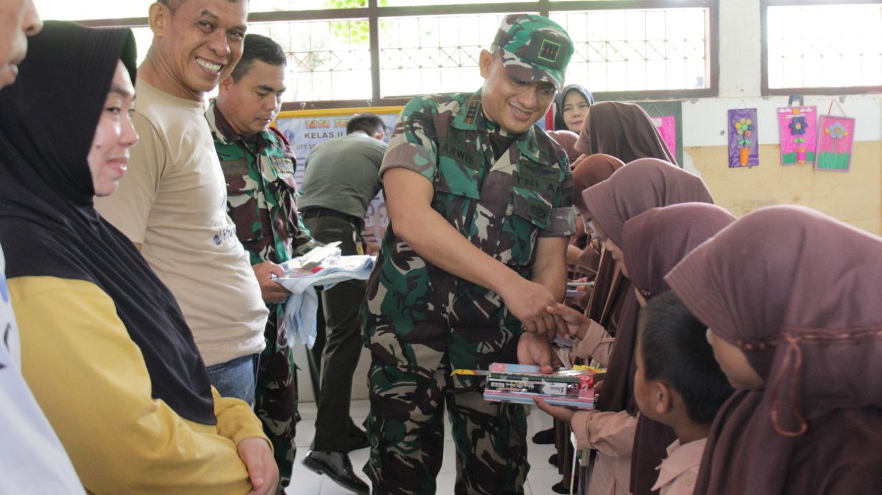 TNI & POLRI Aksi Kompak Babinsa Koramil 1407-03/Cenrana Dan Siswa SD Inpres Watu : Kerja Bakti Perindah Sekolah