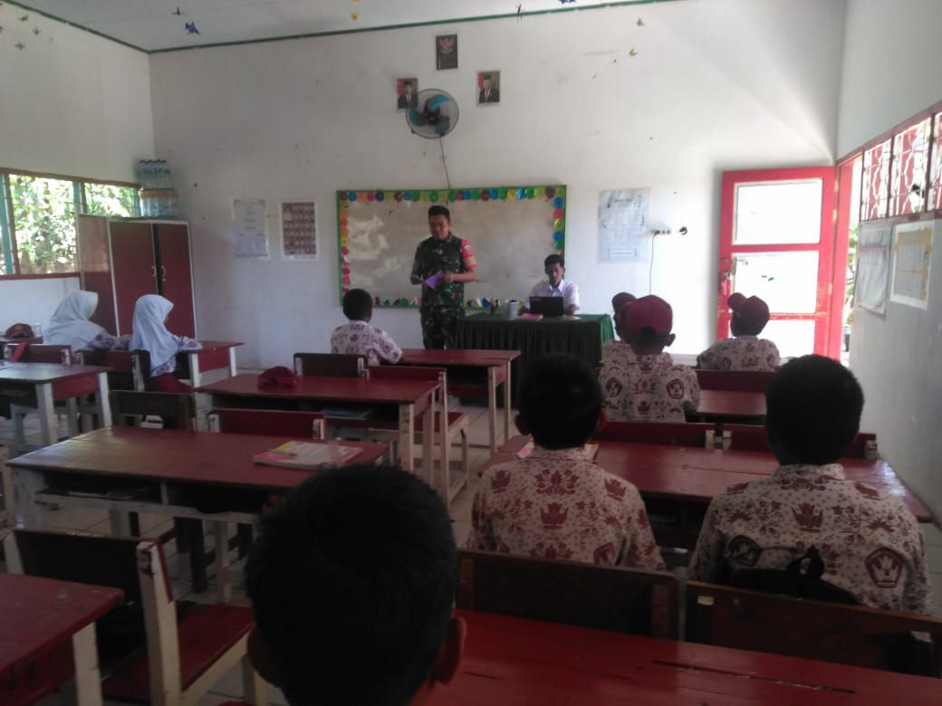 Aksi Kompak Babinsa Koramil 1407-03/Cenrana Dan Siswa SD Inpres Watu : Kerja Bakti Perindah Sekolah