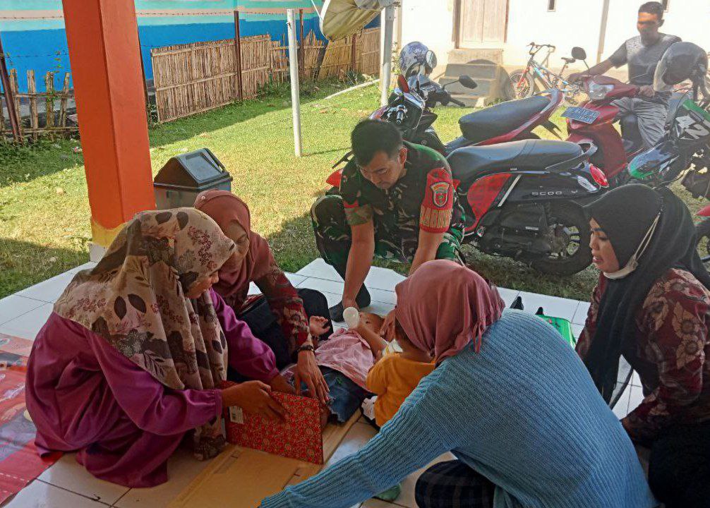 TNI & POLRI Sinergi Babinsa Koramil 1407-04/Tellusiatinge Dan Kader Kesehatan, Kawal Posyandu Sejahtera Di Kelurahan Tokaseng