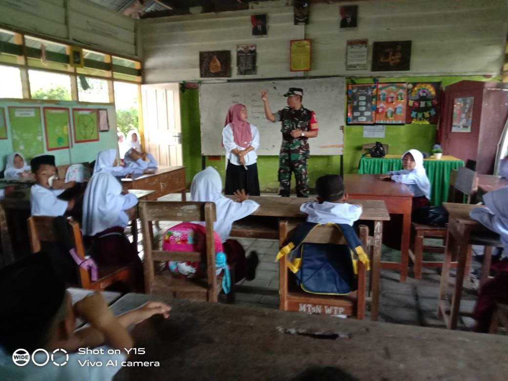 Babinsa Koramil 1407-19/Kahu Dorong Kesadaran Lingkungan Siswa SDN 252 Massila