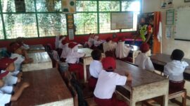 Kawal Gizi Pelajar, Babinsa Koramil 1407-07/Tanete Riattang Dampingi Pembagian Makan Gratis Di SDN 12/79 Macanang