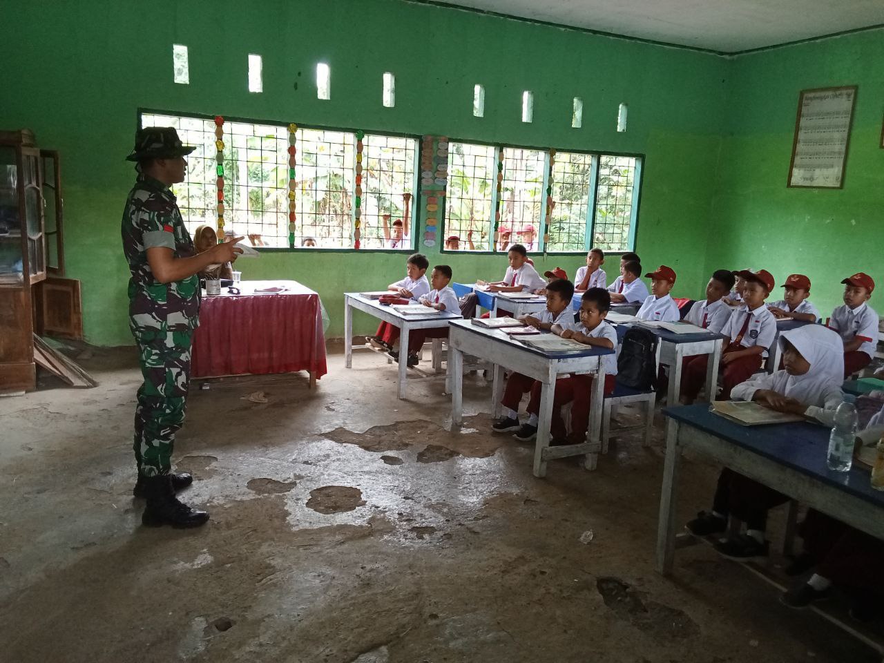 TNI & POLRI Babinsa Koramil 1407-19/Kahu Dorong Kesadaran Lingkungan Siswa SDN 252 Massila