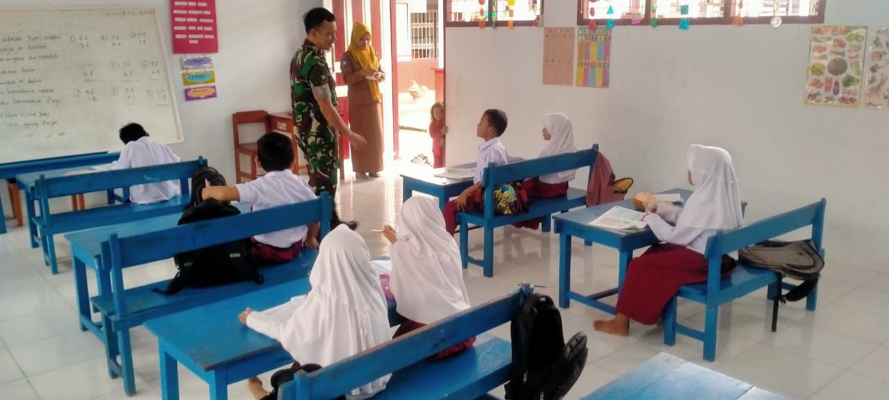 TNI & POLRI Babinsa Koramil 1407-19/Kahu Dorong Kesadaran Lingkungan Siswa SDN 252 Massila
