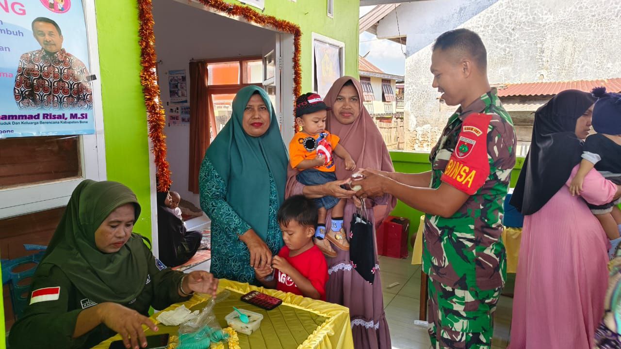Wujudkan Balita Sehat, Babinsa Koramil 03/Cenrana Turun Tangan Dampingi Posyandu