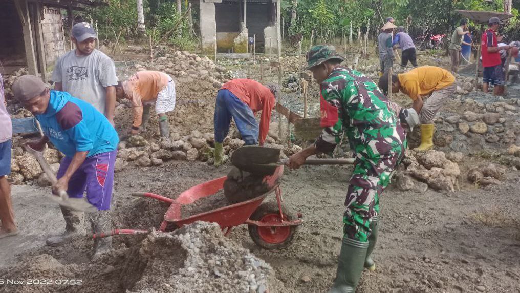 Kemanunggalan Di Desa Carigading : Babinsa Koramil 1407-06/Awangpone Gerakkan Semangat Gotong Royong Bersihkan Desa