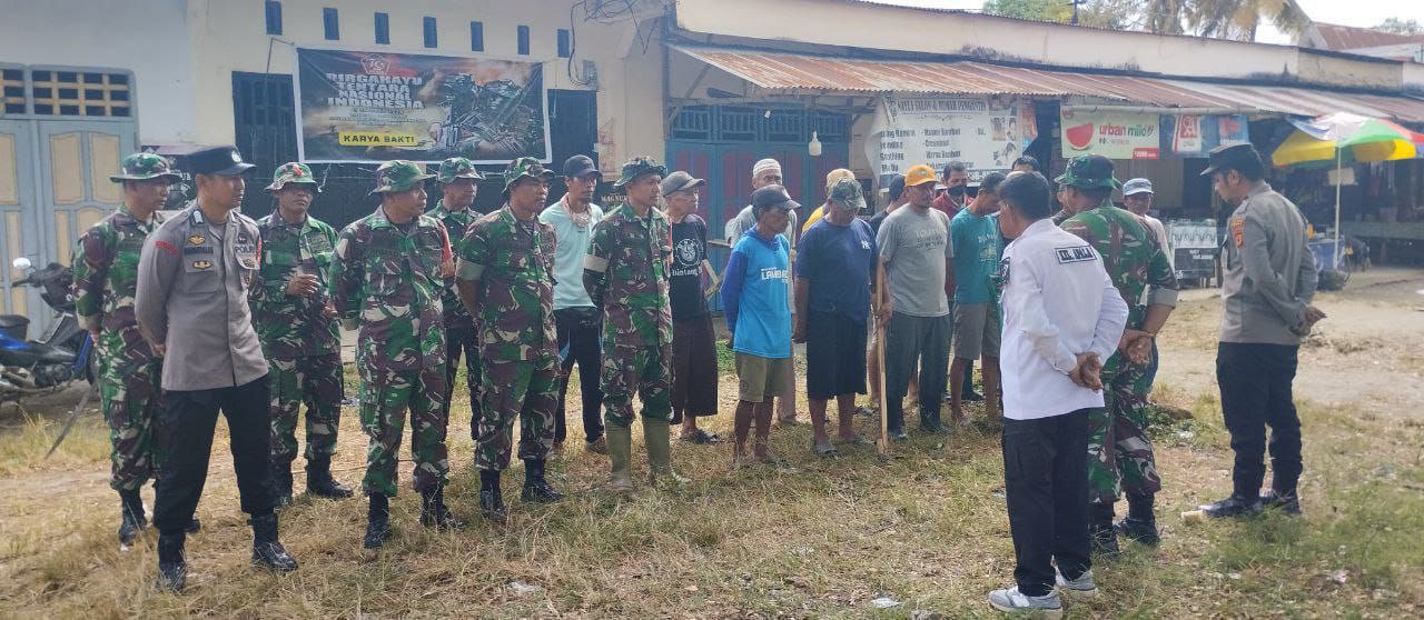 TNI & POLRI Kemanunggalan Di Desa Carigading : Babinsa Koramil 1407-06/Awangpone Gerakkan Semangat Gotong Royong Bersihkan Desa