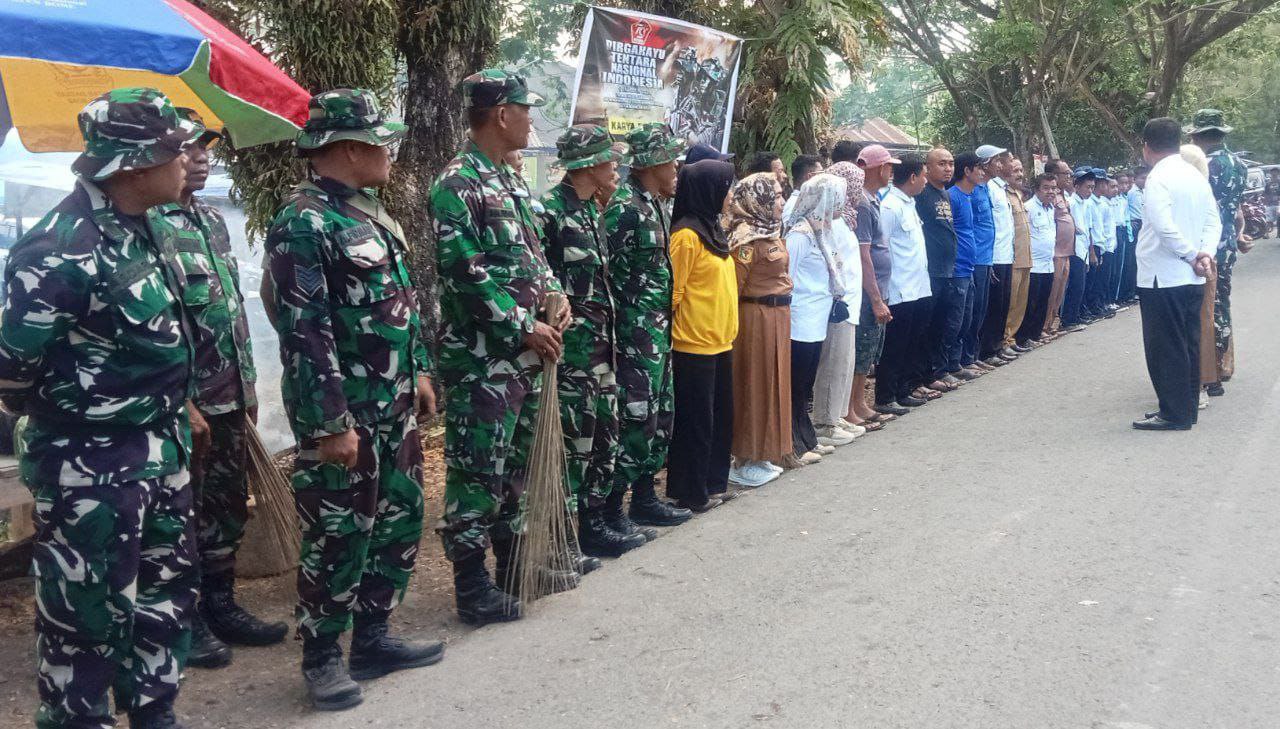 Kemanunggalan Di Desa Carigading : Babinsa Koramil 1407-06/Awangpone Gerakkan Semangat Gotong Royong Bersihkan Desa