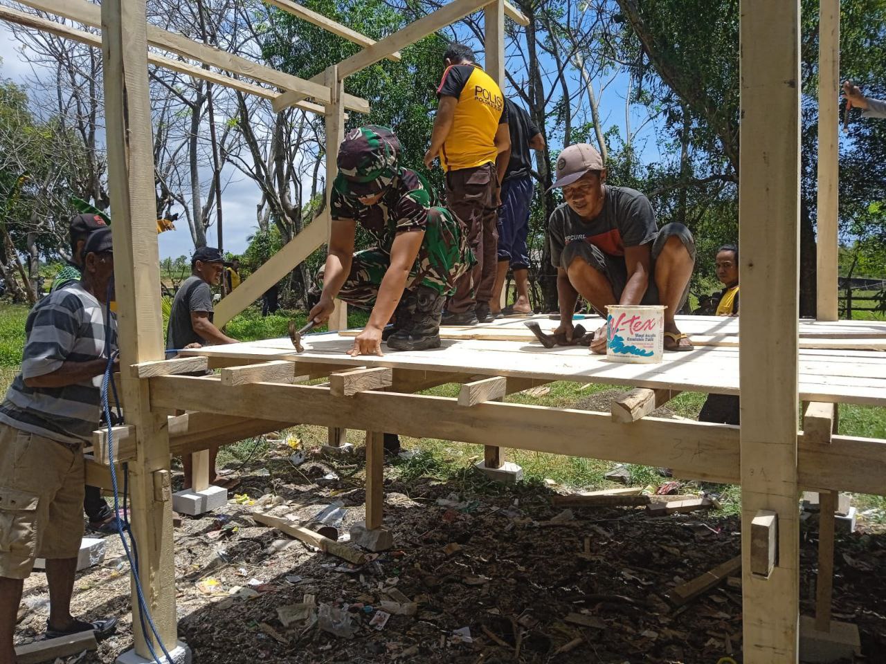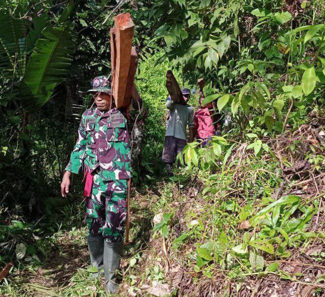 TNI & POLRI Kemanunggalan Di Desa Carigading : Babinsa Koramil 1407-06/Awangpone Gerakkan Semangat Gotong Royong Bersihkan Desa